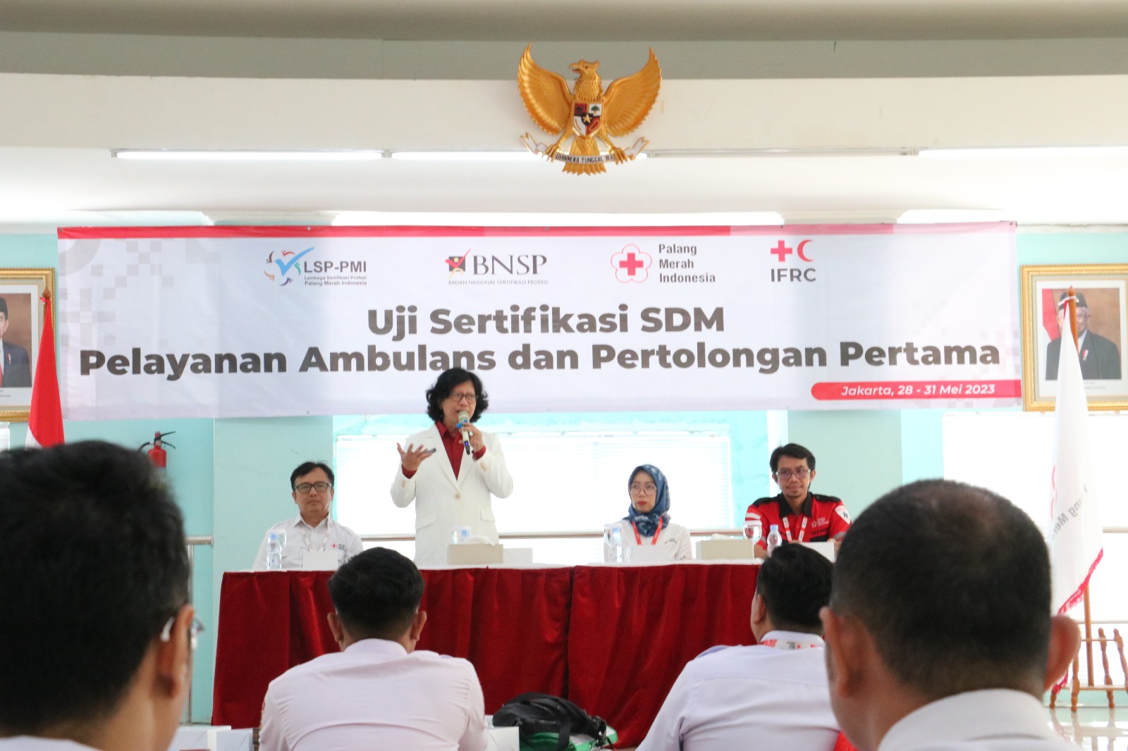 Ketua LSP PMI, Gunawan Permadi menyampaikan terima kasih kepada International Federation of Red Cross and Red Crescent Societies (IFRC) yang telah mendukung penuh sertifikasi profesi tersebut. "Kami berharap, para peserta dapat mengikuti sertifikasi ini dengan baik, sehingga bergelar Kompeten!" tandas Gunawan.