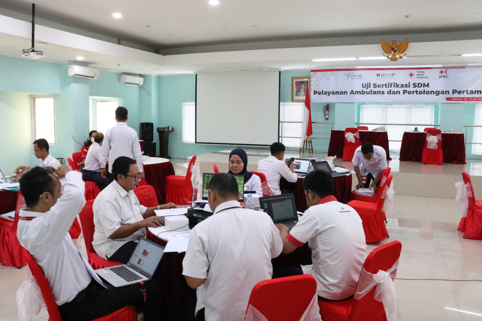 JAKARTA TIMUR.- Sebanyak 20 peserta dari perwakilan PMI Pusat/Provinsi/Kabupaten/Kota ( berasal dari PMI di wilayah Dumai, Banten, Jawa Barat, Jawa Tengah, Yogyakarta dan Jawa Timur) selama 3 (tiga) hari ke depan (28-31/05/2023) mengikuti Uji Kompetensi dengan Skema Sertifikasi Okupasi Pertolongan Pertama (Pelaksana Utama & Koordinator Utama) dan Pelayanan Ambulans (Pelaksana Utama & Koordinator Utama). Kegiatan tersebut digelar di Tempat Uji Kompetensi (TUK) PMI Dumai.